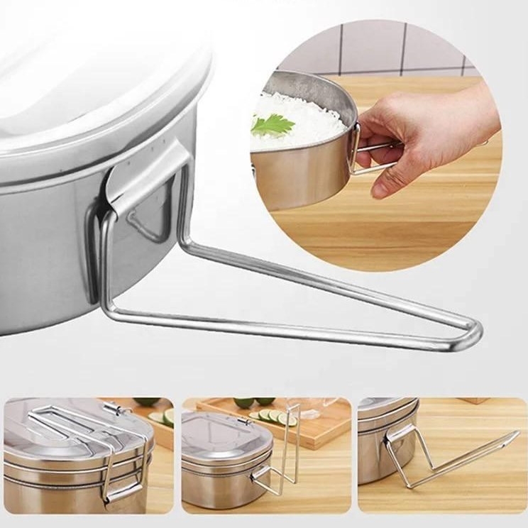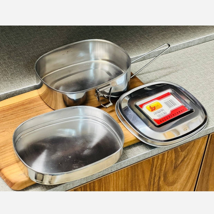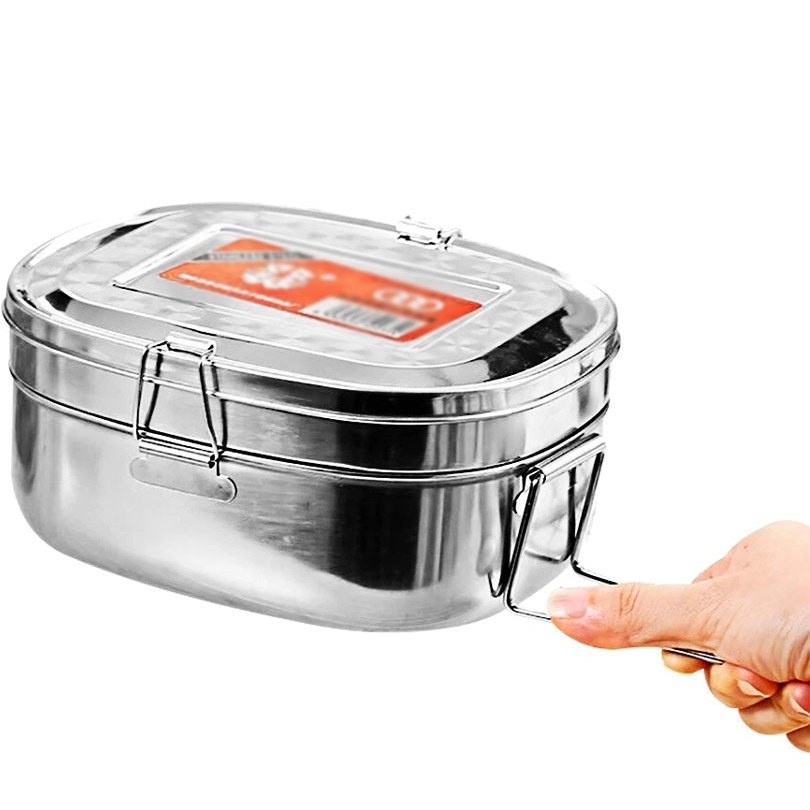 ظرف غذا لانچ باکس 2 طبقه استیل قفل دار بزرگ (استیل نگیر وارداتی)سایز بزرگ