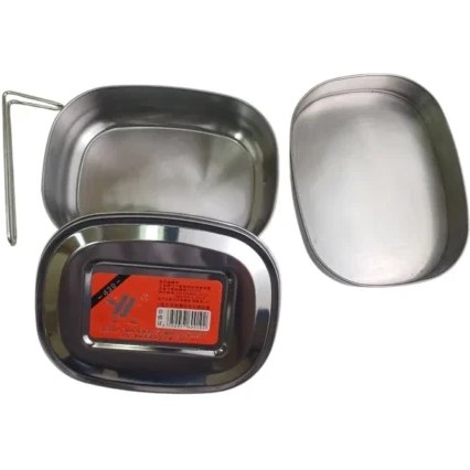 جنس: استیل ابعاد: ارتفاع ظرف داخلی 3.5 – ارتفاع ظرف بزرگ5cm– عرض14 سانتیمتر طول 17cm ارتفاع کل 7/5cm